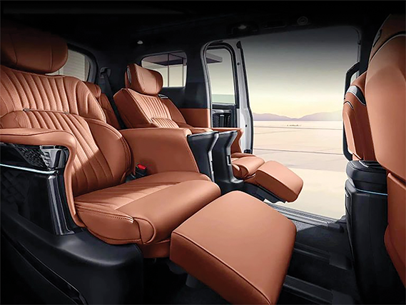Entry for passengers is via dual- power sliding doors, which leads to the second row of seats with 10-point air-pump massage, heating and ventilation. The rear seats also come with a four-way power adjustment in an interior offered with soundproof laminated glass to ensure serene travel.