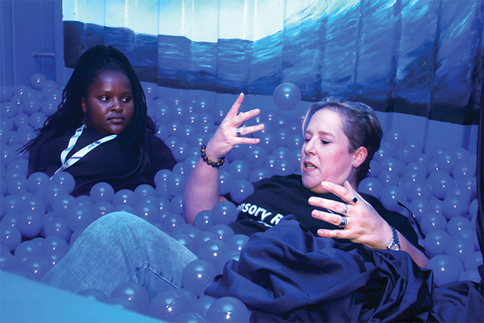 At the heart of the project is a repurposed shipping container transformed into a fully functional sensory room using recycled materials. Inside, users can engage in a range of activities designed to stimulate and regulate sensory responses — from immersive ball ponds to calming weighted blankets and interactive play sessions.