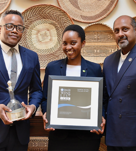 THREESOME: Thuli Magubane Joash Gabriel and Tshepang Molisana pictured at a wine tasting featur- ing wines from Michelangelo International Wine and Spirits Awards at the Southern Sun Rosebank SWINGING START TO MICHELANGELO WINE TASTINGS